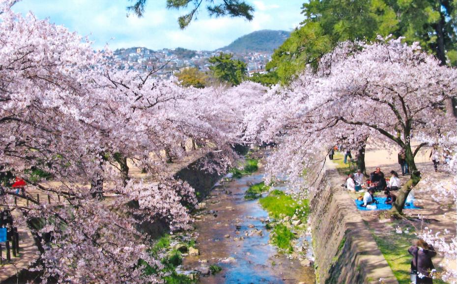 西宮市のランドマークである夙川公園とその背景に映る甲山の景色は、西宮市を代表する眺望であり、多くの来訪者が訪れる眺望スポットになっている。 撮影:西宮市都市デザイン課 |
