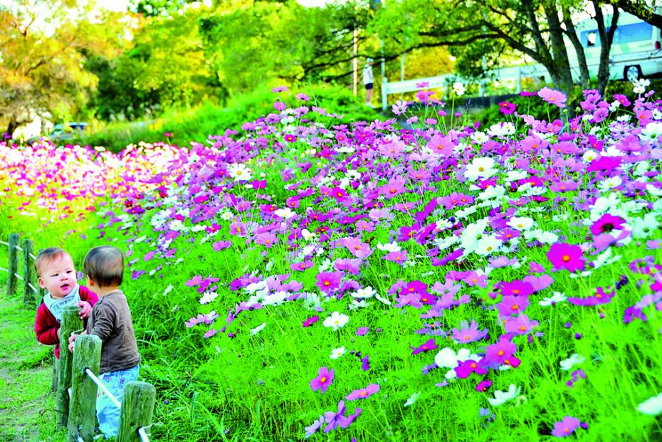 秋には約2,900平方メートルに咲く約23万本の、紫、ピンク、白の色とりどりの花が魅力です。春には、菜の花もきれいに咲きます。 撮影:西宮市広報課 |