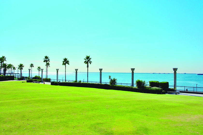 潮風が気持ちのいい広場で芝生もきれいに整備されています。海を眺めながらのんびりしてみませんか? 撮影:西宮市広報課 |