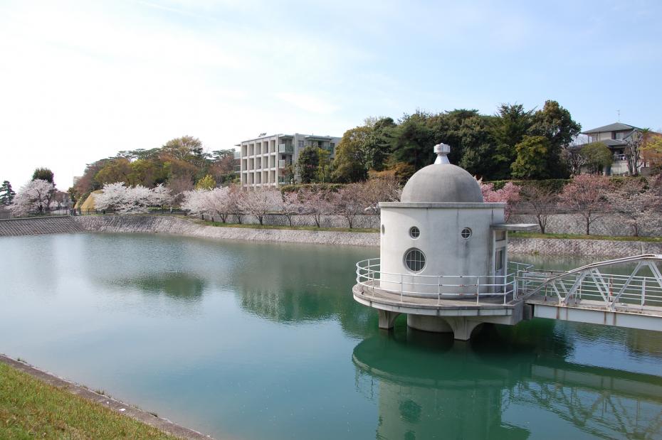 ニテコ池周辺の美しい桜と緑あふれる住宅景観が西宮らしさを演出している。 撮影:西宮市都市デザイン課 |