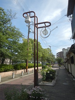 尼崎市のコミュニティ道路には、カタツムリのモチーフの街灯が建ち並びます。 撮影:尼崎市開発指導室 |