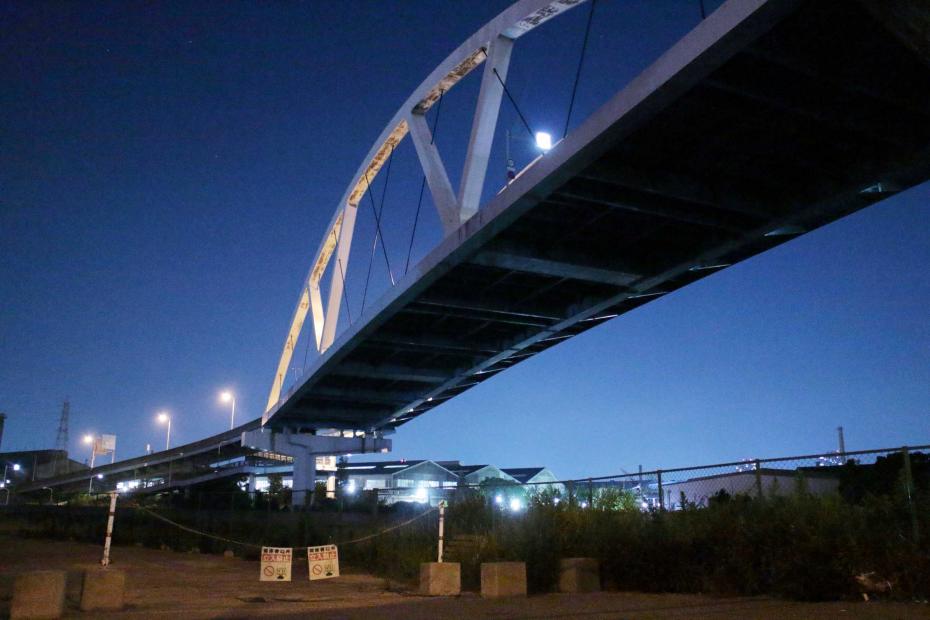 | 中島新橋周辺から見る夜空に映える中島新橋のハープ橋 |