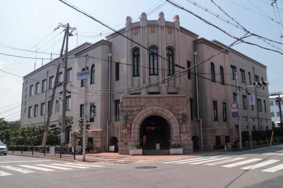 | 県立芦屋警察署前から見る県立芦屋警察署の旧玄関 |