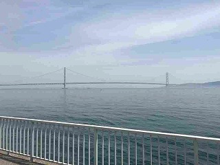 大蔵海岸から見る明石海峡大橋を含む海 |