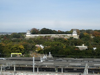 JR明石駅のプラットホームから見る明石城 |