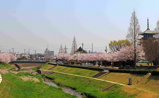 播磨町野添北公園から見る桜と円満寺 |