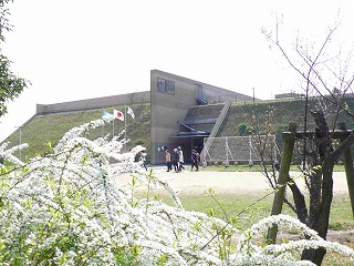 県立考古博物館広場から見る考古博物館メイン入口 |