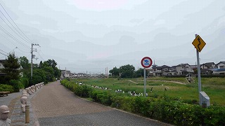 野添であい公園の喜瀬川側出入口から見る雨にも負けない草花 |