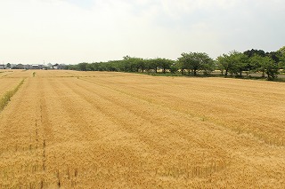 黄金色に輝く麦畑は稲美町の風物詩。風が吹くと黄金の波が美しく、まちに初夏のおとずれを伝えてくれます。