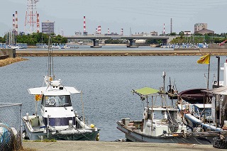 漁船と住宅が両岸に並び、高砂らしいまちなみだと思う |