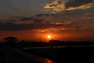 赤く染まった夕陽は綺麗でした。