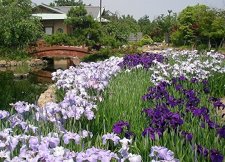 石ヶ池公園が近いこの場所は、5月になると散歩途中でも思わず立ち止まって見入ってしまうほど、ショウブの花が咲き誇ります。
