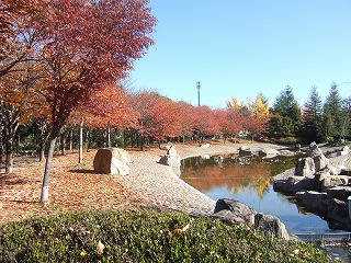夏には子供たちが池の中に入り楽しそうに遊んでいます。秋には木々が色づき、紅葉を楽しむことができます。