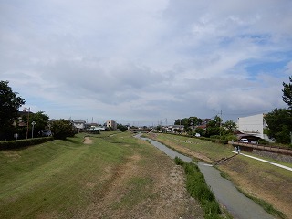 播磨町:喜瀬川(住吉橋)から見る喜瀬川・ふるさと橋(メロディー橋) |
