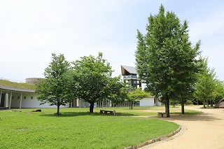 屋上緑化をとり入れた曲線の美しい景観と一体化したミュージアム