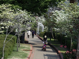 であいのみち(野添であい公園横)から見るハナミズキ咲くであいのみち |