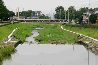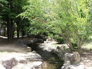 野添北公園(滝の下流)から見る野添北公園のせせらぎ |