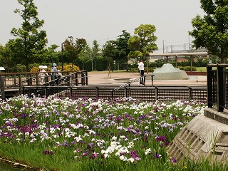 写真の他にホタルの里・桜並木・滝・小川・浅くて子どもが入って遊べる「亀池」。橋・太鼓橋・あやめ池等が散在しています。