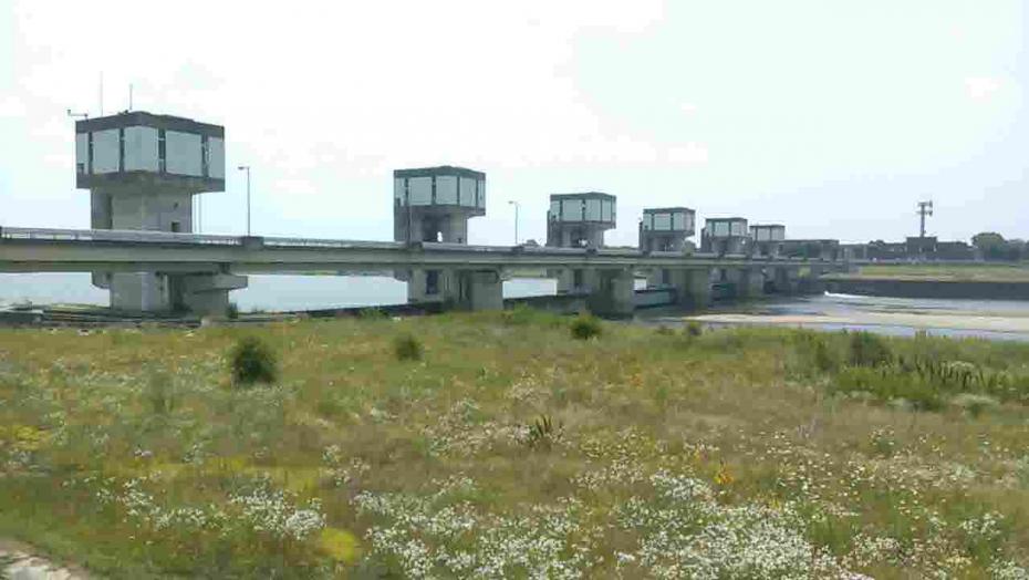 播磨町の喜瀬川に架かる城橋から見る喜瀬川1号可動堰 |
