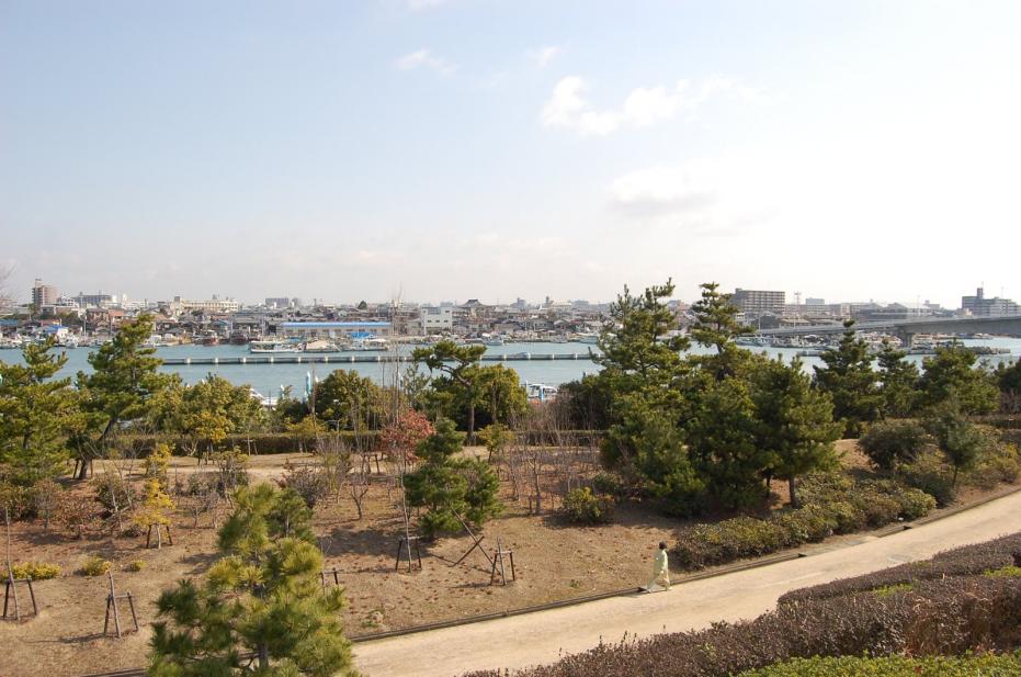 旧波門崎燈籠堂から見る旧波門崎燈籠堂と明石港 |