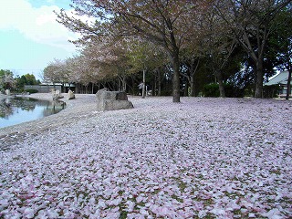 春夏秋冬楽しめる「野添北公園」。春の桜終わりの頃、満開も良いのですが、「さくら絨毯」も最高です。