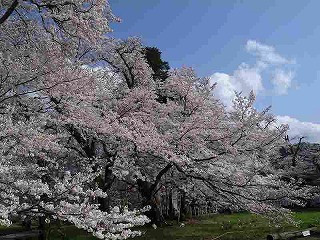| 豊岡市日高町の清滝地区コミュニティセンターや国道482号線から見る巨大なソメイヨシノの古木や国道沿いの桜並木 |