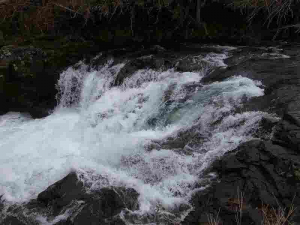 豊岡市日高町十戸~栗栖野から見る溶岩でできた稲葉川の川の流れや滝 |