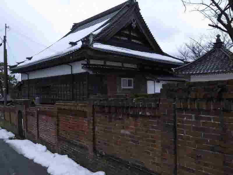 | 美方郡新温泉町浜坂 西光寺付近から見る煉瓦で築かれたお寺の囲障があるまちなみ |