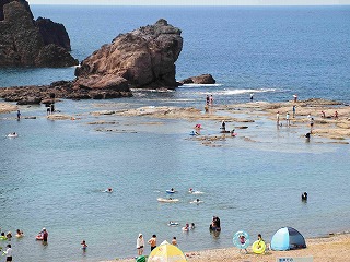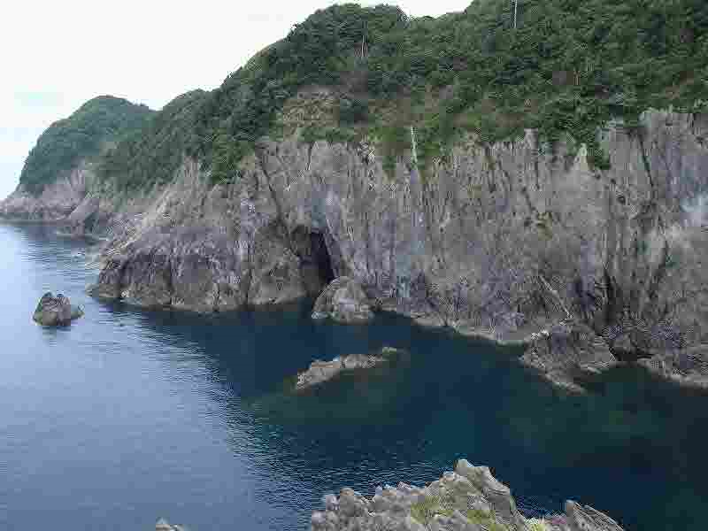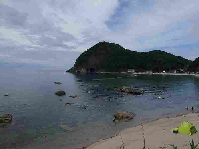 | 豊岡市竹野町切濱 切浜海岸付近から見る日本海のきれいな海や洞門を有する黒鼻崎 |
