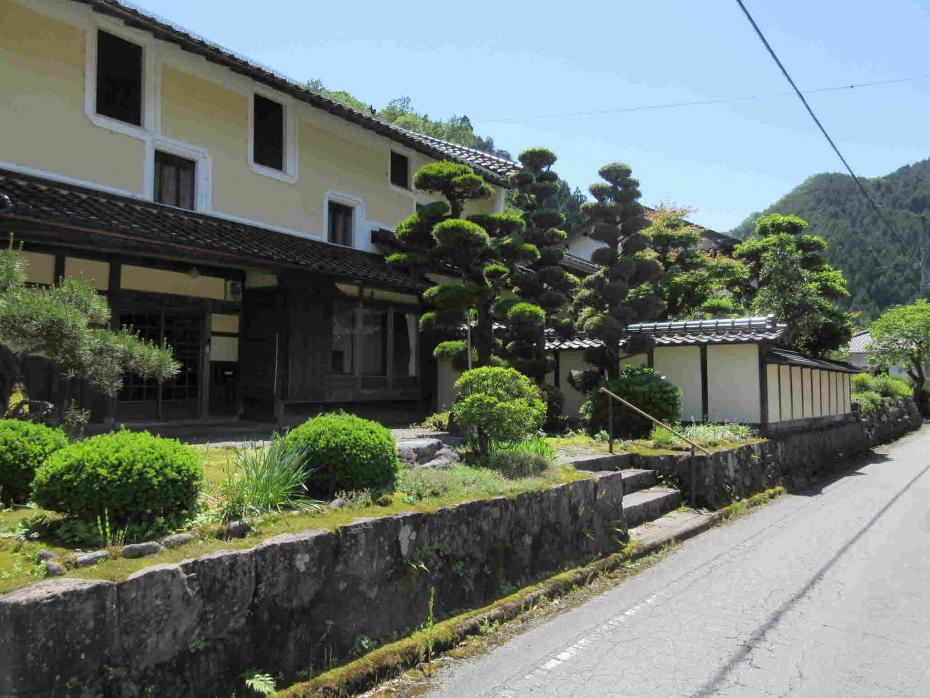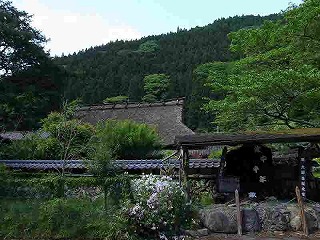 | 江戸時代前期に建てられた佐中の千年家のたたずまいが山間の緑と清水が豊富な静かな場所に調和して落ち着いた雰囲気の景観を形成している。 周辺には花木も散見される。 |