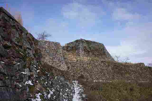 | 朝来市和田山町竹田 竹田城跡から見る山城の曲輪と曲輪を構成する石積み |