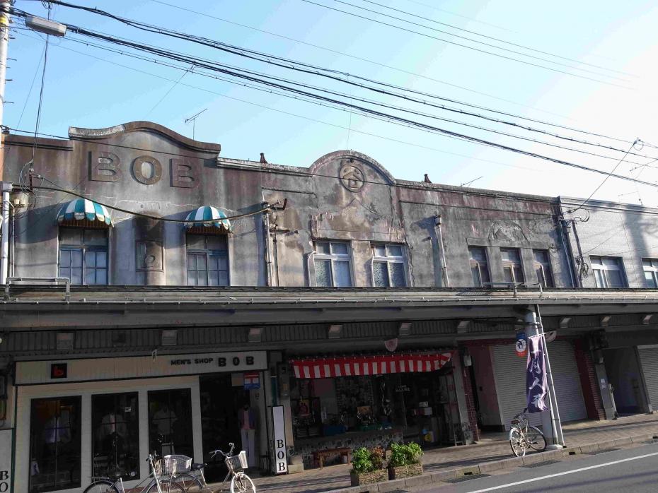 | 豊岡市中央町 大開通商店街から見る北但大震災により失われた後に復興したたくさんの建物が残るまちなみ |