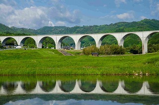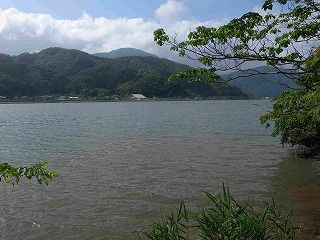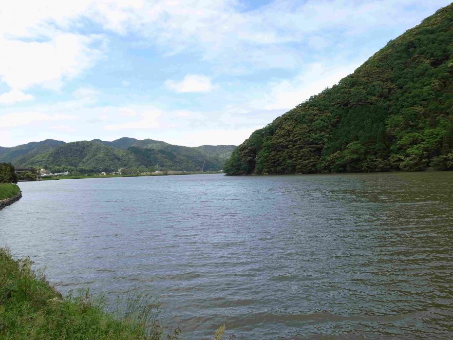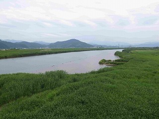 | 豊岡市赤石 玄武洞ミュージアム駐車場から見る円山川の水面 |