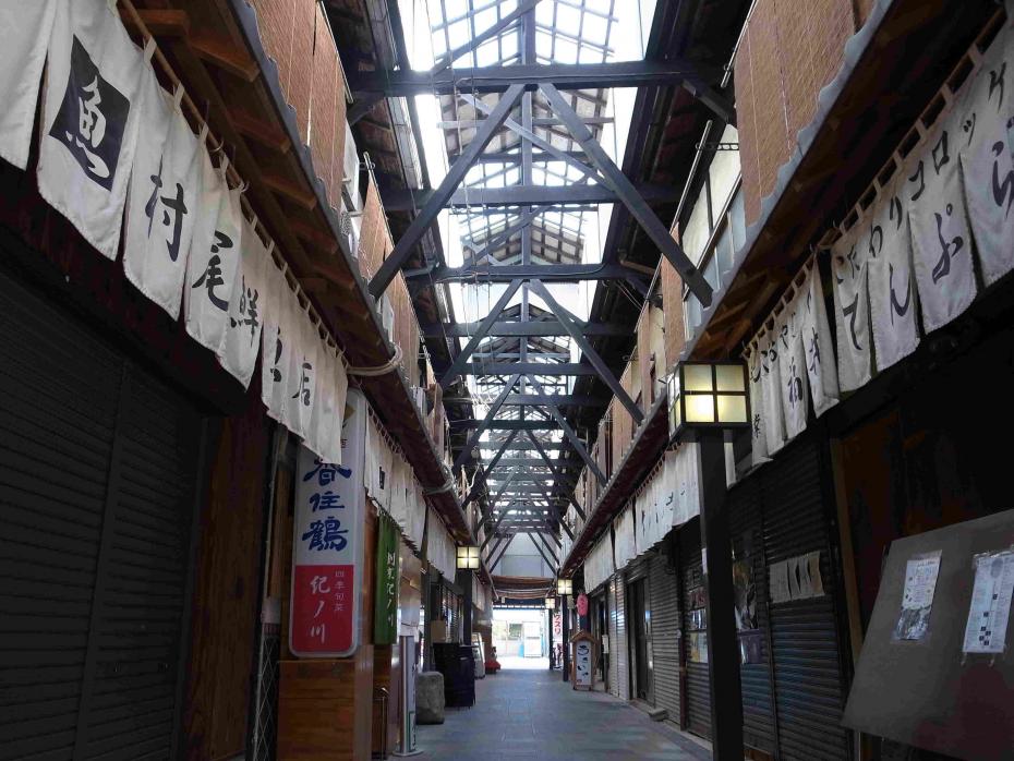 | 屋根付きの公設市場であるが、各店舗が庇を持った町屋風の建物であるため屋外のような雰囲気になっている。 |