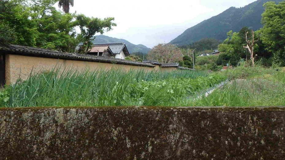 | 山東町粟鹿から見る築地塀のある里山風景 |