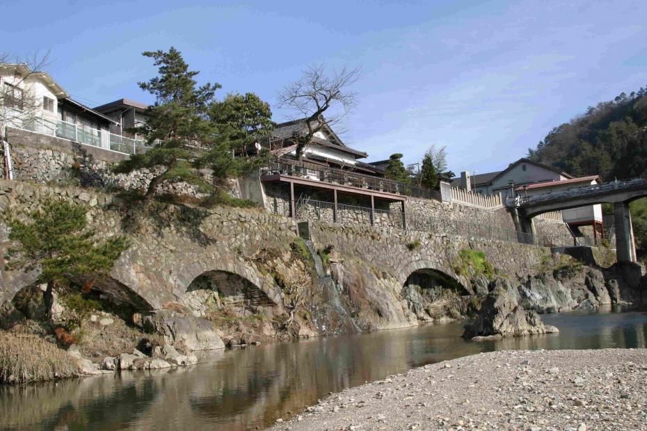 一円電車が通っていたトロッコ道と市川との景観は絶景。アーチ形の石垣は、近代化を推し進めていた全盛期の生野のまちの勢いを感じることができる。 撮影:則定澄美 |