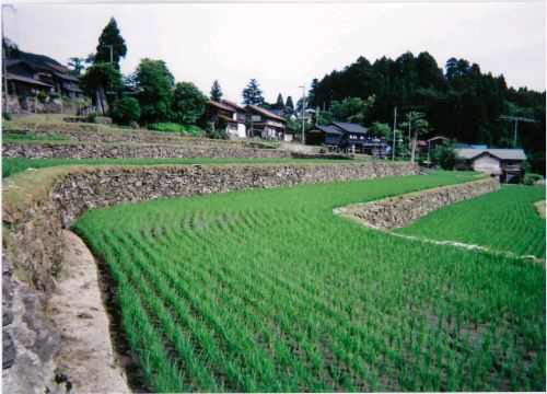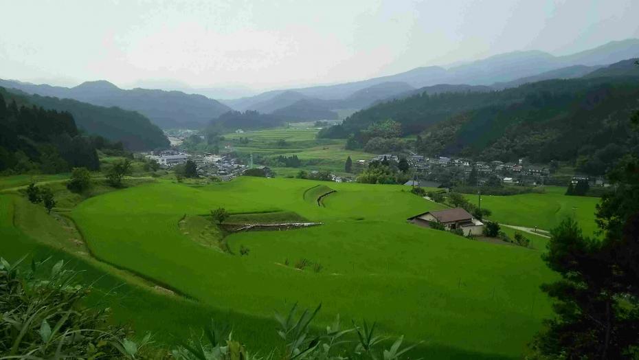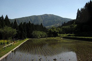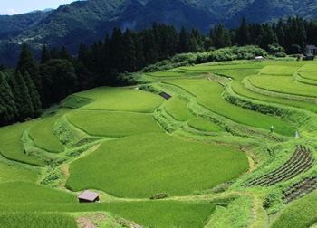 棚田100選には入ってはいませんが、美しい棚田です。氷ノ山などの山々も見えます。またすぐ近くに大カツラがあることでも有名です。 撮影:正中亮 |