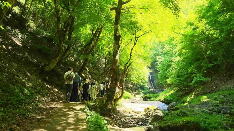 | 香美町村岡区猿尾滝の遊歩道から見る猿尾滝 |