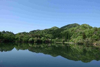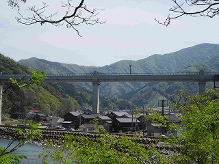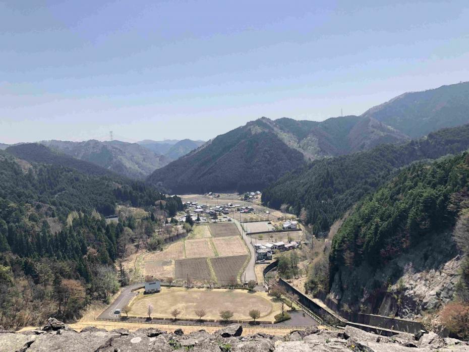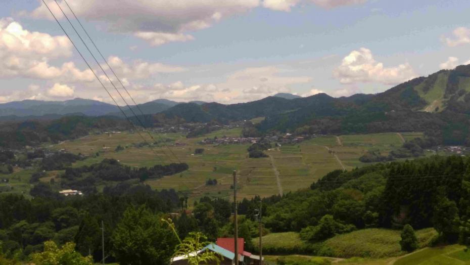 | 黒川地区の黒川ロックフィルダム頂上から見る美人の湯が見える原風景 |