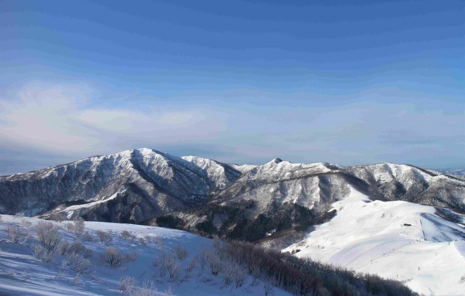 | ハチハチ北スキー場 鉢伏山 山頂から見る兵庫県最高峰 雪化粧の氷ノ山 |