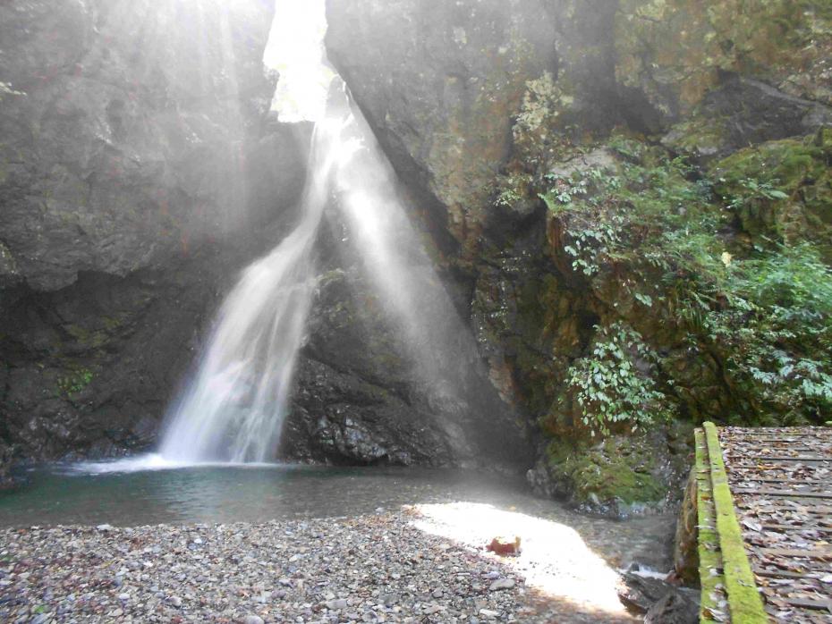 | 日本の滝百選に選ばれている猿尾滝です。滝つぼから見るのもいいですが、遊歩道から滝を見るとまた違ったきれいさがあります。 |