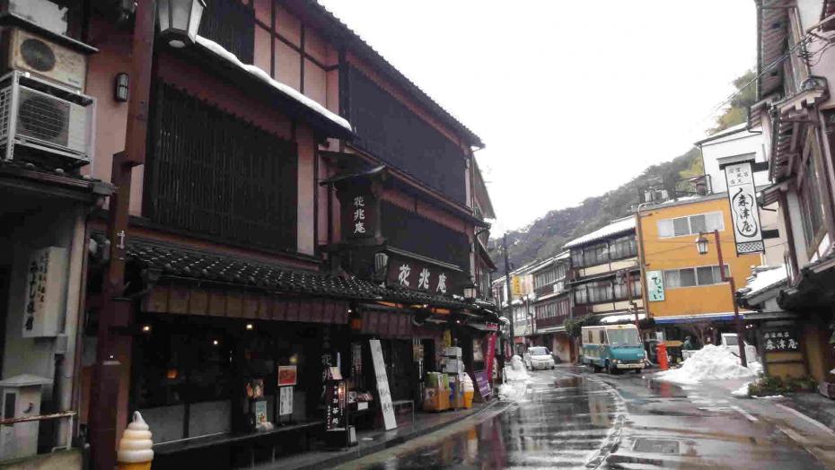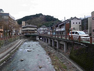 | 新温泉町湯 湯村温泉街の繁栄橋から見る春来川の風景 |