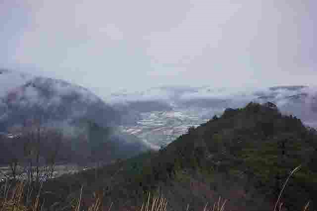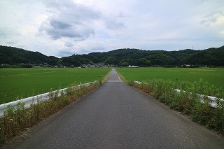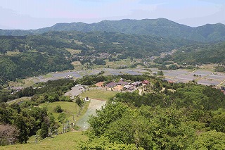 | 養父市国道9号南側のあぜ道から見る八木城の城下町 |