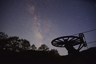 山陰海岸を一望できる七坂八峠の絶景ポイントのひとつ。夏の夜には水平線に連なるいさり火により幻想的な景観が広がる。 撮影:新温泉町建設課地域整備係 |