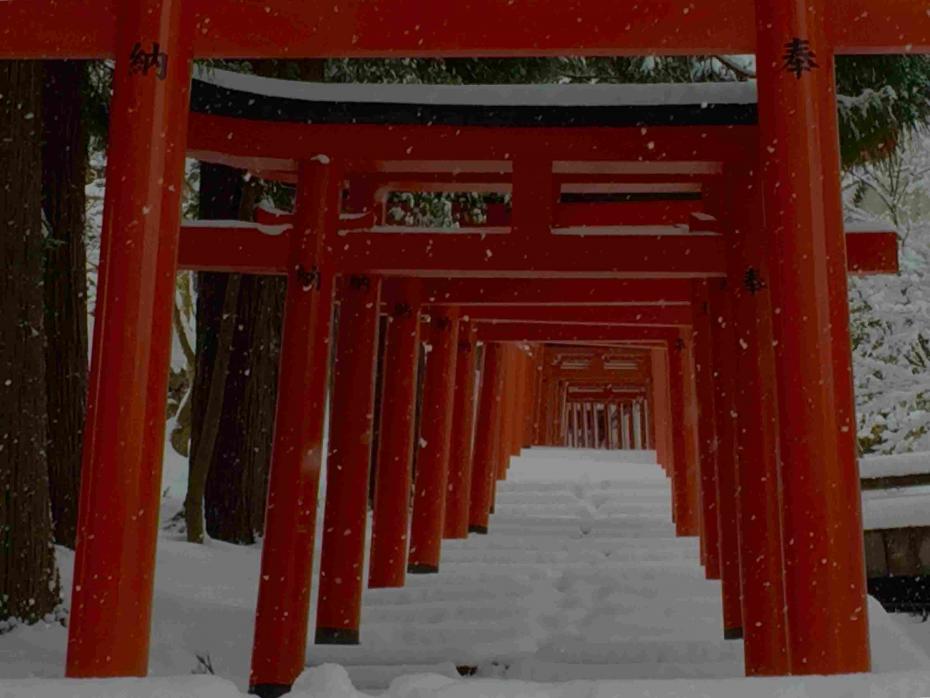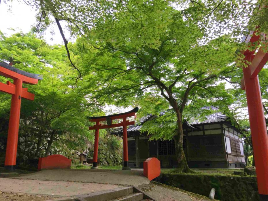 | 地元で親しまれている室町時代の典型的な神社建築のある景観。 |