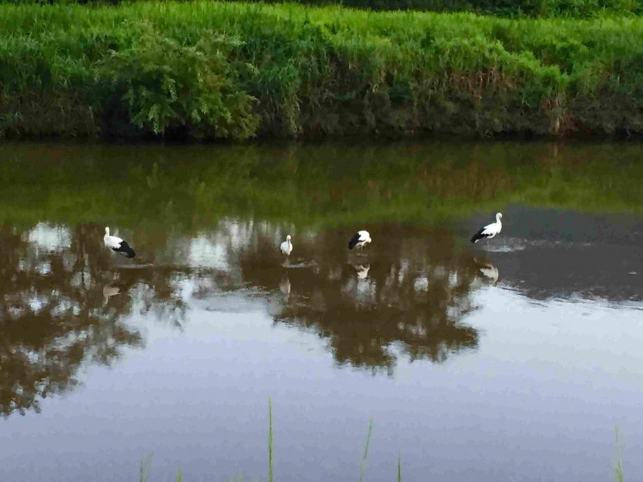 豊岡市城崎町の「ハチゴロウの戸島湿地」管理棟から見るコウノトリが営巣する湿地 |