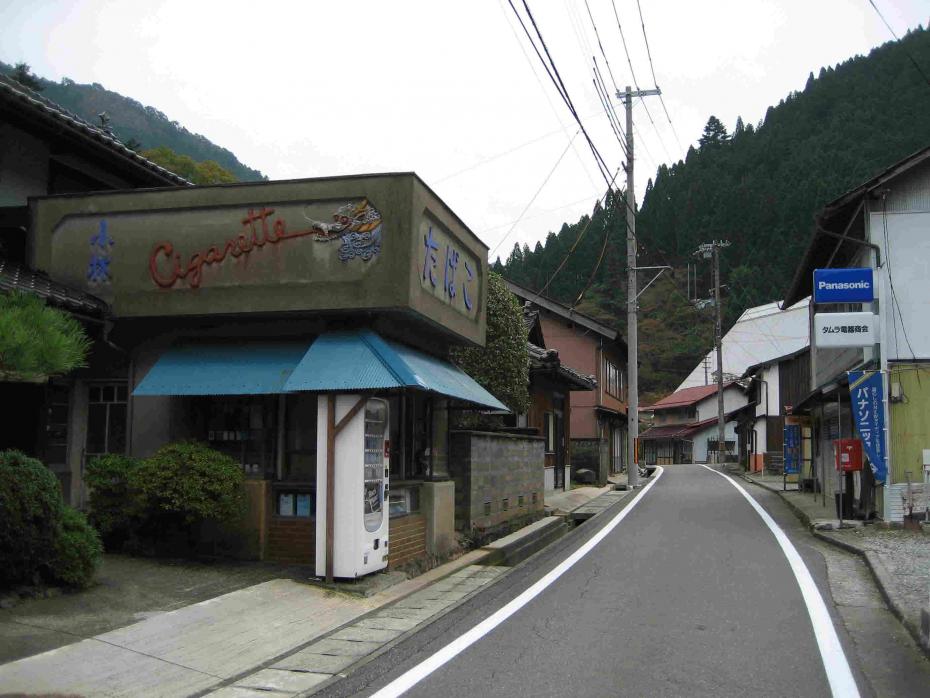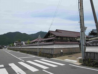 | 出石から福知山に続く国道426号沿いのまちなみです。交差点西北角の建物は昔の農家建築の特徴がよく残っており、主屋や蔵は明治時代のもので、国登録有形文化財です。 |