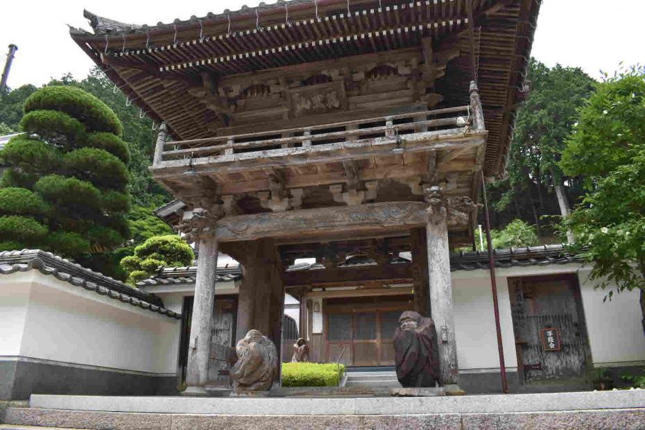 | 養父市八鹿町八木の国道9号線沿いには境内に大きな様々な花木を配した社寺が連なっており、広い空や山々を背景にした美しい景色を楽しむことができる。 |