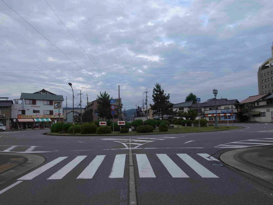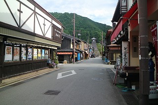 出石皿そば本陣中央店前の交差点から見る古い町並み |