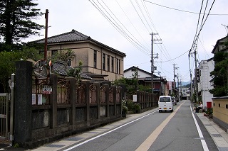 | 新温泉町諸寄港沿いの道から見る北前船寄港地の面影を残す建物 |